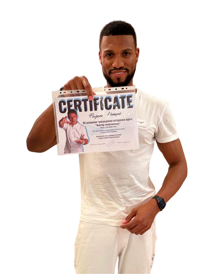 Фидель - профессиональный спортсмен, участник чемпионата мира в составе сборной Кубы по направлению Pelota Vasca, преподаватель латиноамериканских танцев, мастер освобождения тела от психоблоков через энерговолну, автор собственного метода работы с телом.