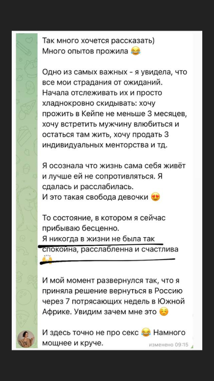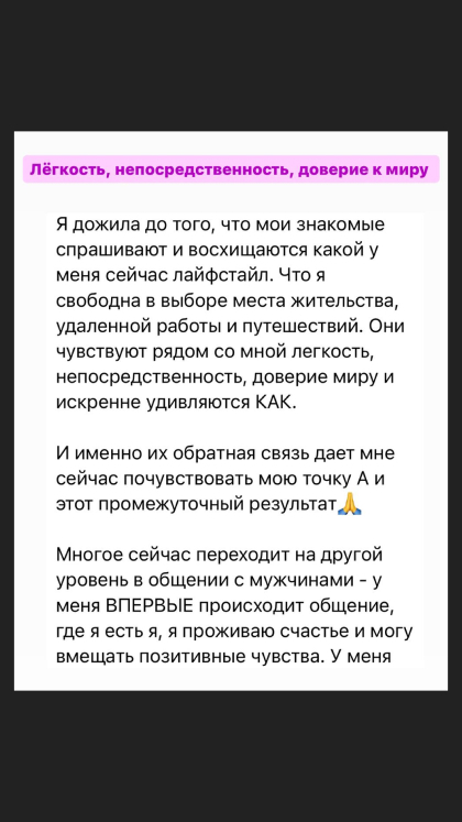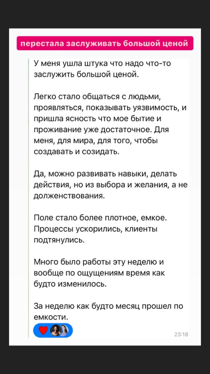 23. Понять какая я как Женщина и дать место этому в своей жизни, научиться заботиться о себе по-настоящему, закрыть свои внутренние дефициты, не перенося их в отношения.
