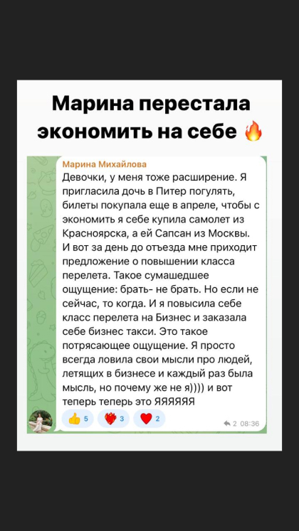 5. Научиться легко говорить цену за свои услуги, поднять стоимость услуг, не думать, что мне еще нужно два диплома и я еще недостаточно заслужила эту стоимость.